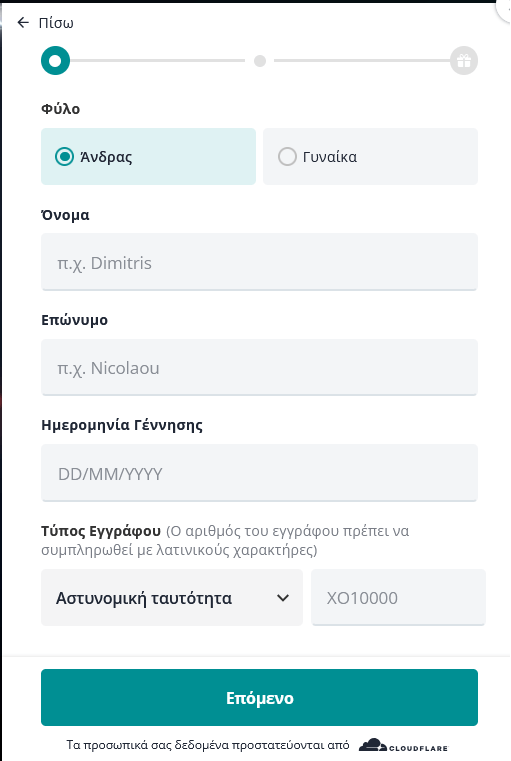 - Συμπληρώνεις διεύθυνση, ΤΚ, Πόλη, κινητό