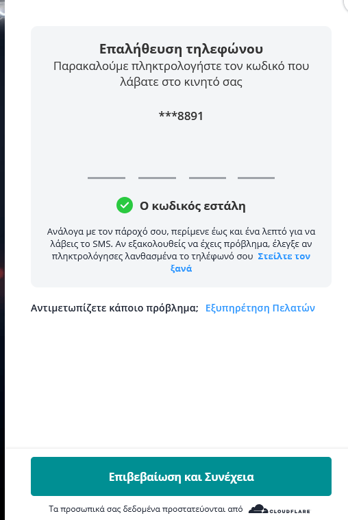 - Εισάγετε τον κωδικό που ήρθε στο κινητό σας στο κατάλληλο πεδίο