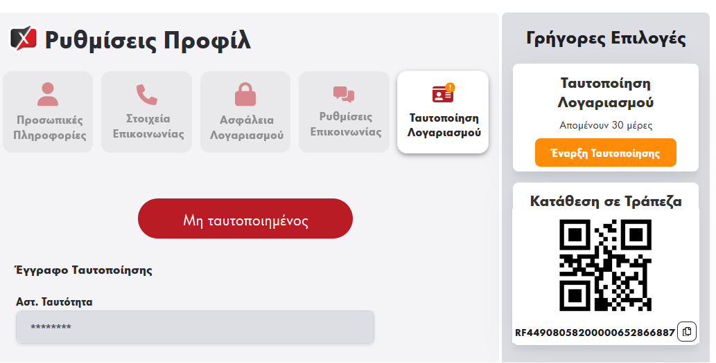 - Πηγαίνετε στο προφίλ σας και μετά στις ρυθμίσεις προφίλ. Κατόπιν πατάτε πάνω στο πορτοκαλί κουμπί που γράφει Έναρξη Ταυτοποίησης.