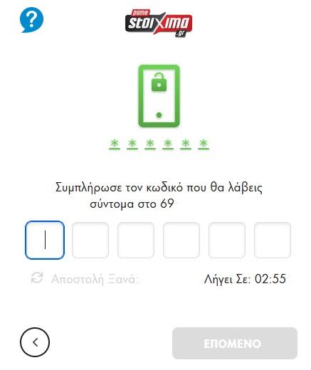 - Συμπληρώνετε τον εξαψήφιο κωδικό που ήρθε στο κινητοί σας.