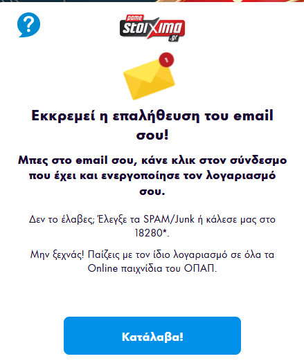 Τρεις τρόποι υπάρχουν για να επικοινωνήσετε με την εταιρία. Μπορείς να έρθεις σε επαφή μαζί τους μέσω live chat, email στο support@opap.gr και τηλεφωνικά στο 8001004448 χωρίς χρέωση ή με αστική χρέωση στο 2105798280 και στο 18280.